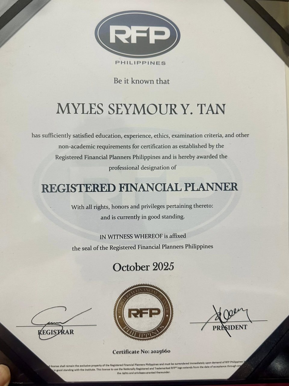 Achieved professional certification as a Registered Financial Planner (RFP), demonstrating expertise in financial planning and advisory services.