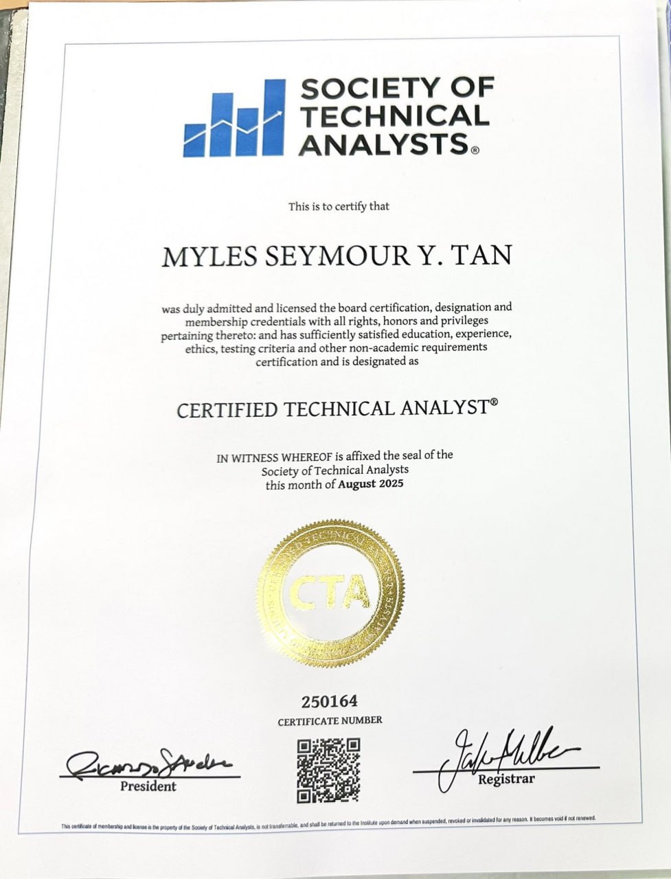 Achieved professional certification as a Certified Technical Analyst (CTA) from the Society of Technical Analysts, demonstrating expertise in technical analysis and market forecasting.